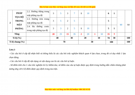 trong mặt phẳng tọa độ Tổng 20 25 15 35 2 20 1 10 35 3 Tỉ lệ (%) 40 30 20 10 70 30 100 Tỉ lệ chung (%) 70 30 100 100 Lưu ý: