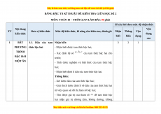 BẢNG ĐẶC TẢ KĨ THUẬT ĐỀ KIỂM TRA GIỮA HỌC KÌ 2