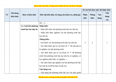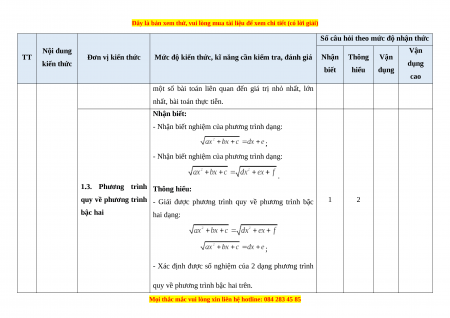 - Các câu hỏi ở cấp độ vận dụng và vận dụng cao là các câu hỏi tự luận.