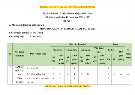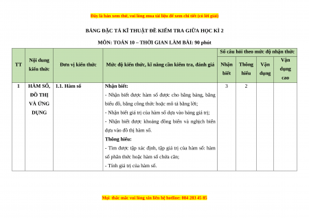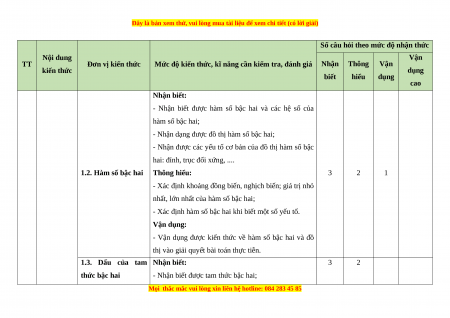 - Các câu hỏi ở cấp độ vận dụng và vận dụng cao là các câu hỏi tự luận.