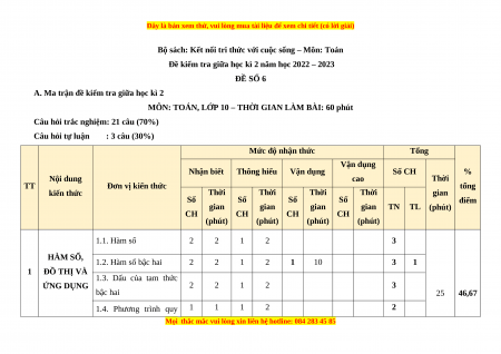 Đề kiểm tra giữa học kì 2 năm học 2022 – 2023 ĐỀ SỐ 6