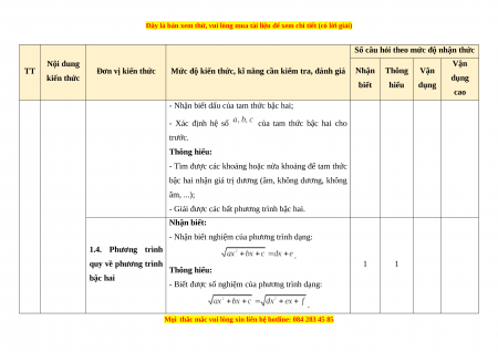 - Các câu hỏi ở cấp độ vận dụng và vận dụng cao là các câu hỏi tự luận.