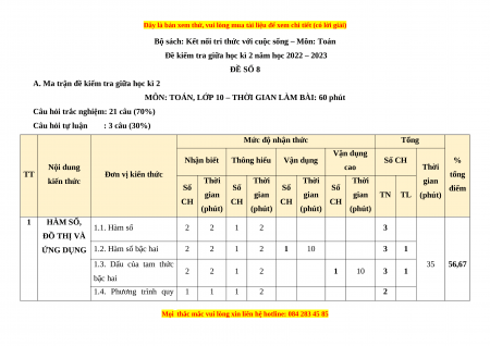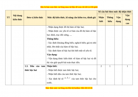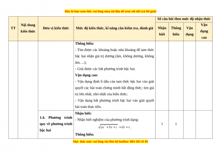 - Các câu hỏi ở cấp độ vận dụng và vận dụng cao là các câu hỏi tự luận.