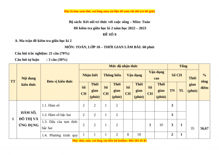 Đề kiểm tra giữa học kì 2 năm học 2022 – 2023 ĐỀ SỐ 9