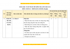 Đơn vị kiến thức tổng kiến thức Thời Thời Thời Thời gian Số Số Số Số điểm gian gian gian gian TN TL (phút) CH CH CH CH (phút) (phút) (phút) (phút) 1.1. Hàm số 2 2 1 2 3 HÀM SỐ, 1.2. Hàm số bậc hai 2 2 1 2 3 1