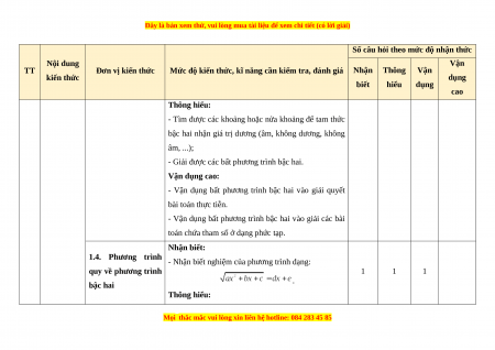 - Các câu hỏi ở cấp độ vận dụng và vận dụng cao là các câu hỏi tự luận.