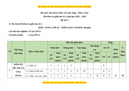Đề kiểm tra giữa học kì 2 năm học 2022 – 2023 ĐỀ SỐ 5