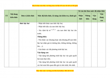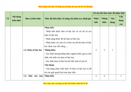 - Các câu hỏi ở cấp độ vận dụng và vận dụng cao là các câu hỏi tự luận.