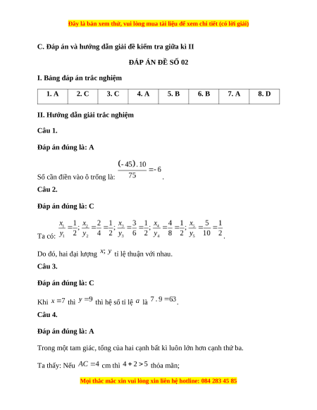 C. Đáp án và hướng dẫn giải đề kiểm tra giữa kì II ĐÁP ÁN ĐỀ SỐ 02
