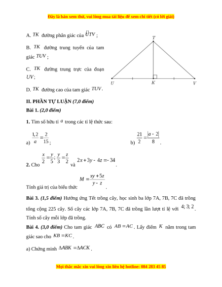 Bài 3. (1,5 điểm) Hưởng ứng Tết trồng cây, học sinh ba lớp 7A, 7B, 7C đã trồng