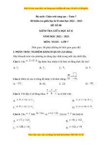 NĂM HỌC 2022 – 2023 MÔN: TOÁN – LỚP 7