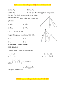 . Khẳng định nào dưới đây sai? A. ; B. ; C. ; D. Câu 10. Cho tam giác có . Hỏi tam giác cân tại đỉnh nào?