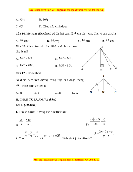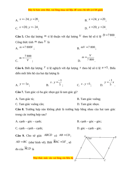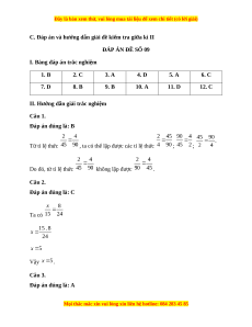 Câu 3. Theo tính chất dãy tỉ số bằng nhau thì khẳng định nào sau đây là đúng? A. ; B. ; C. ; D. . Câu 4. Cho biết và . Giá trị lần lượt là