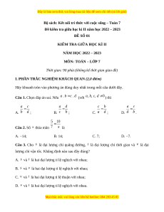 NĂM HỌC 2022 – 2023 MÔN: TOÁN – LỚP 7