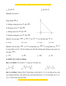 D. Đường vuông góc kẻ từ đến . Câu 11. Cho tam giác có cm; cm. Độ dài cạnh là A. 4 cm; B. 1 cm; C. 2 cm; D. 3 cm. Câu 12. Cho tam giác có là trung điểm của là trung điểm của