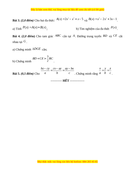 Bài 3. (2,0 điểm) Cho hai đa thức: và . a) Tính ;