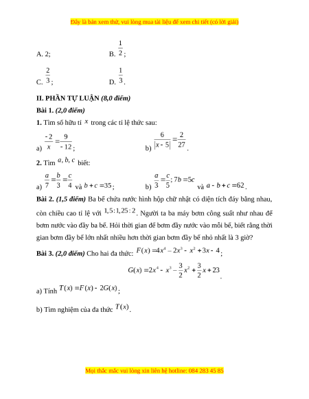 Đây là bản xem thử, vui lòng mua tài liệu để xem chi tiết (có lời giải)
