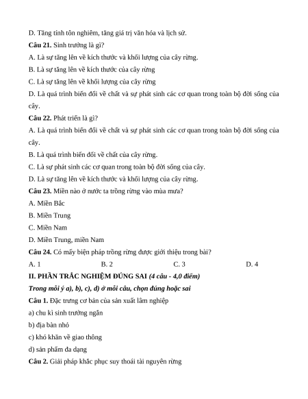 Câu 16. Ngành lâm nghiệp có mấy triển vọng chính? A. 1 B. 2 C. 3 D. 4