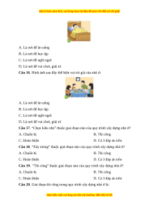 Câu 18. “Xây móng” thuộc giai đoạn nào của quy trình xây dựng nhà ở? A. Chuẩn bị B. Thi công C. Hoàn thiện D. Cả 3 đáp án trên