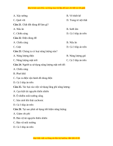 Câu 24. Người ta sử dụng năng lượng mặt trời để: A. Chiếu sáng B. Phơi khô