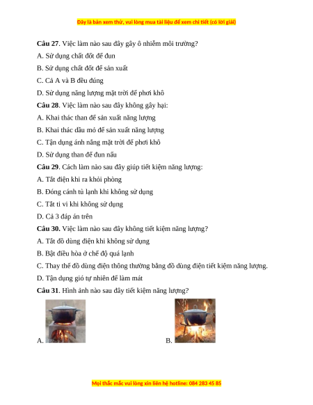 Câu 26. Tại sao phải sử dụng tiết kiệm năng lượng: A. Giảm chi phí