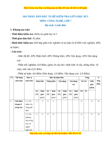 MA TRẬN, BẢN ĐẶC TẢ ĐỀ KIỂM TRA GIỮA HỌC KÌ I