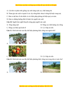 Câu 7. Theo em, trồng trọt trong nhà có mái che áp dụng cho cây nào sau đây? A. Vùng nắng nóng B. Vùng khô hạn C. Vùng băng giá D. Cả 3 đáp án trên
