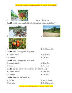 Câu 15. Tỉa, dặm cây thuộc bước nào của quy trình trồng trọt? A. Làm đất, bón lót B. Gieo trồng C. Chăm sóc D. Thu hoạch