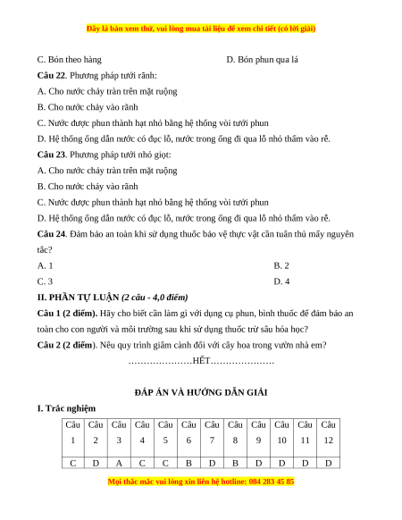 Câu 18. Có phương thức gieo trồng nào? A. Gieo hạt B. Trồng bằng rau, củ C. Trồng bằng cây con D. Cả 3 đáp án trên