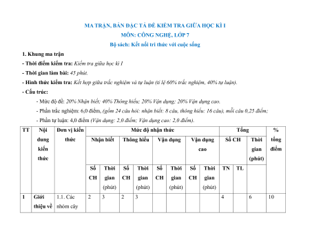 - Tailieugiaovien.com.vn giới thiệu bộ đề giữa kì 1 gồm đầy đủ ma trận và lời giải chi tiết môn Công ngệ 7 Kết nối tri thức mới nhất năm 2024 nhằm giúp Giáo viên có thêm tài liệu tham khảo ra đề thi Công nghệ lớp 7.