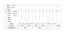 Mức độ nhận thức Tổng % dung thức Nhận biết Thông hiểu Vận dụng Vận dụng Số CH Thời tổng kiến cao gian điểm thức (phút) Số Thời Số Thời Số Thời Số Thời TN TL