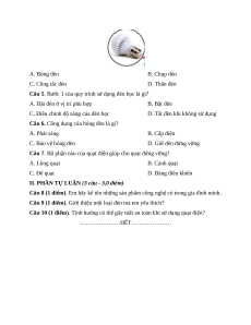Câu 10 (1 điểm). Tình huống có thể gây mất an toàn khi sử dụng quạt điện?