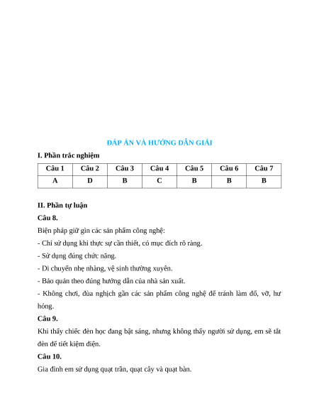 Câu 8 (1 điểm). Biện pháp giữ gìn các sản phẩm công nghệ?