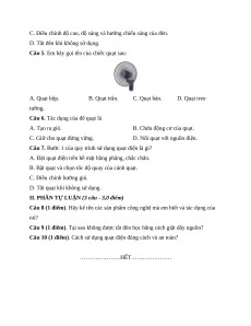 Câu 5. Em hãy gọi tên của chiếc quạt sau: A. Quạt hộp. B. Quạt trần. C. Quạt bàn. D. Quạt treo tường.