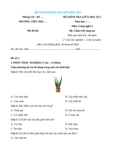 TRƯỜNG TIỂU HỌC … Năm học: …. Môn: Công nghệ 4 Mã đề thi: