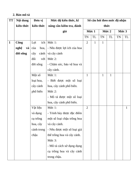 - Mô tả được một số loại hoa, cây cảnh phổ biến. Vật liệu Mức 1: 2 1 và dụng