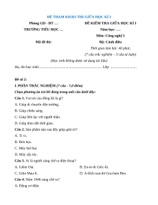 ĐỀ THAM KHẢO THI GIỮA HỌC KÌ I Phòng GD - ĐT …