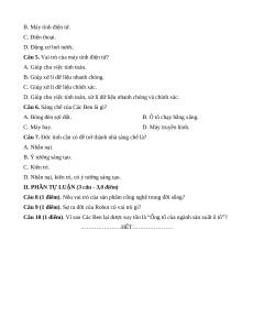 Câu 9 (1 điểm). Sự ra đời của Robot có vai trò gì?