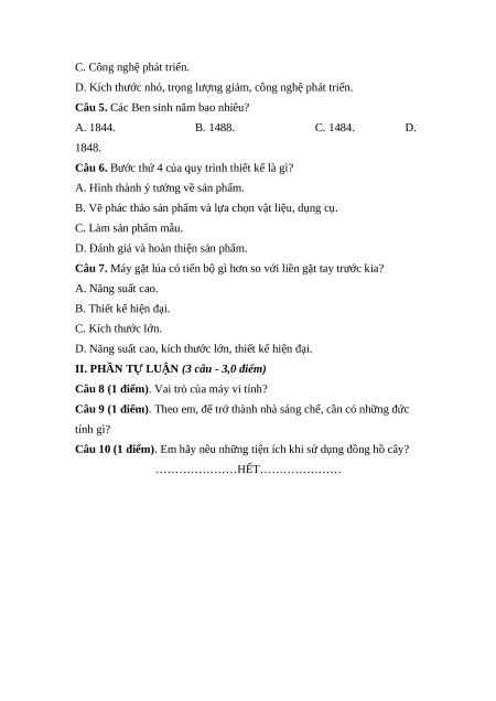 (7 câu trắc nghiệm – 3 câu tự luận)