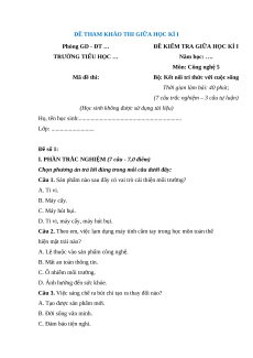 TRƯỜNG TIỂU HỌC … Năm học: …. Môn: Công nghệ 5 Mã đề thi: