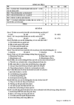 Câu 1: Tổ chức nào sau đây thúc đẩy tự do hóa thương mại thế giới? A. IMF. B. WB. C. WTO. D. WHO.
