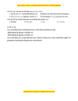 Câu 24. Nơi nào sau đây trong năm có sáu tháng luôn là toàn ngày? A. Xích đạo. B. Chí tuyến. C. Cực. D. Vòng cực. II. TỰ LUẬN