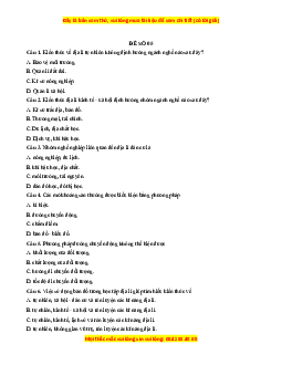 Câu 1. Kiến thức về địa lí tự nhiên không định hướng ngành nghề nào sau đây? A. Bảo vệ môi trường. B. Quản lí đất đai. C. Kĩ sư nông nghiệp. D. Quản lí xã hội.