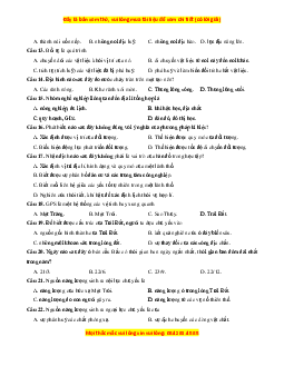 Câu 20. Ngày nào sau đây ở bán cầu Bắc có thời gian ban ngày ngắn nhất, thời gian ban đêm dài nhất trong năm? A. 21/3. B. 22/6. C. 23/9. D. 22/12.