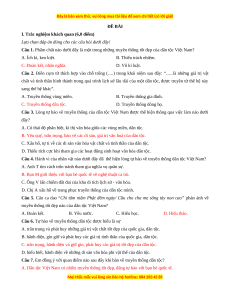 Câu 1. Phẩm chất nào dưới đây là một trong những truyền thống tốt đẹp của dân tộc Việt Nam? A. Ích kỉ, keo kiệt. B. Thiếu trách nhiệm. C. Đoàn kết, nhân nghĩa. D. Vô kỉ luật.