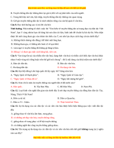 Câu 12. Loại hình văn nghệ dân gian nào dưới đây là nét đẹp truyền thống của đồng bào dân tộc Tày, Nùng, Thái ở Việt Nam? A. Đờn ca tài tử. B. Dân ca Quan họ. C. Dân ca Ví - Giặm. D. Thực hành hát Then.
