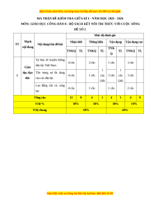 MA TRẬN ĐỀ KIỂM TRA GIỮA KÌ I - NĂM HỌC 2023 - 2024