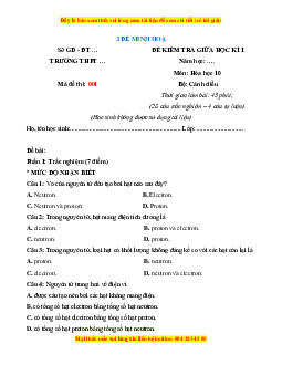 ĐỀ KIỂM TRA GIỮA HỌC KÌ I TRƯỜNG THPT … Năm học: …. Môn: Hóa học 10 Mã đề thi: 001 Bộ: Cánh diều