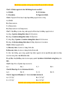 Câu 7: Các đồng vị của cùng một nguyên tố hóa học là những nguyên tử có