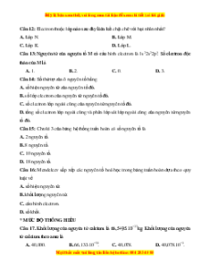 Câu 12: Electron thuộc lớp nào sau đây liên kết chặt chẽ với hạt nhân nhất? A. Lớp N. B. Lớp M. C. Lớp K. D. Lớp L.